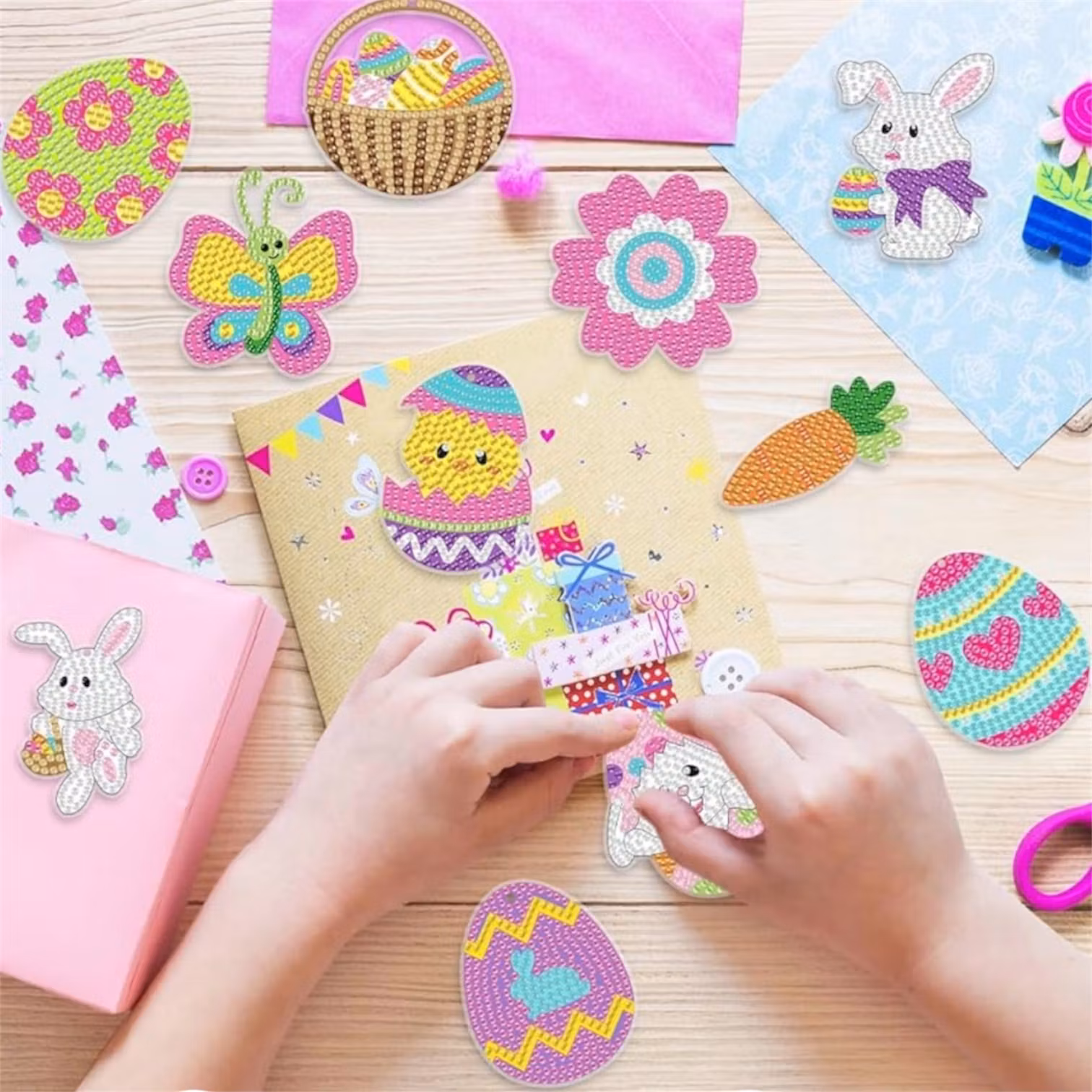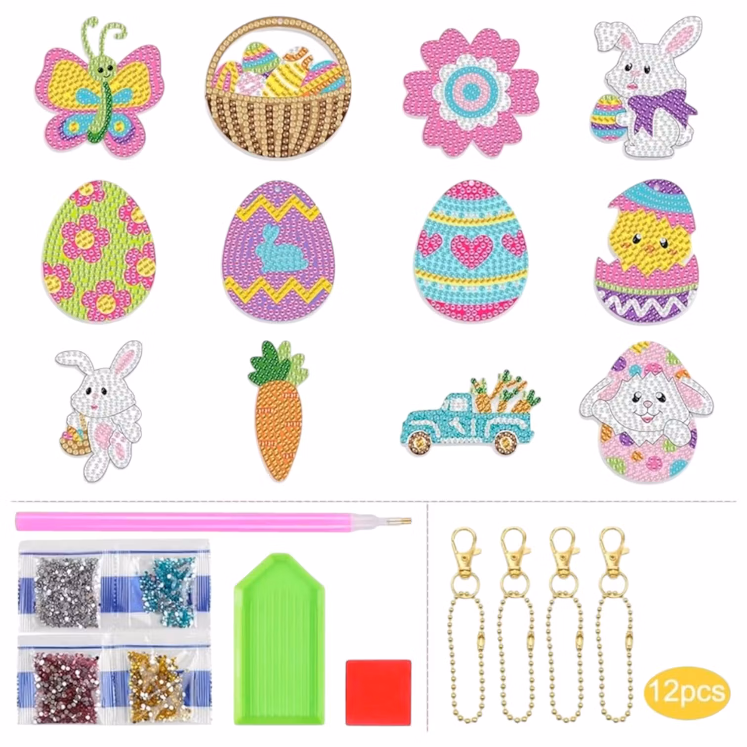 Skapa roliga och färgglada påskdekorationer med detta 12-pack Diamond Painting nyckelringar.