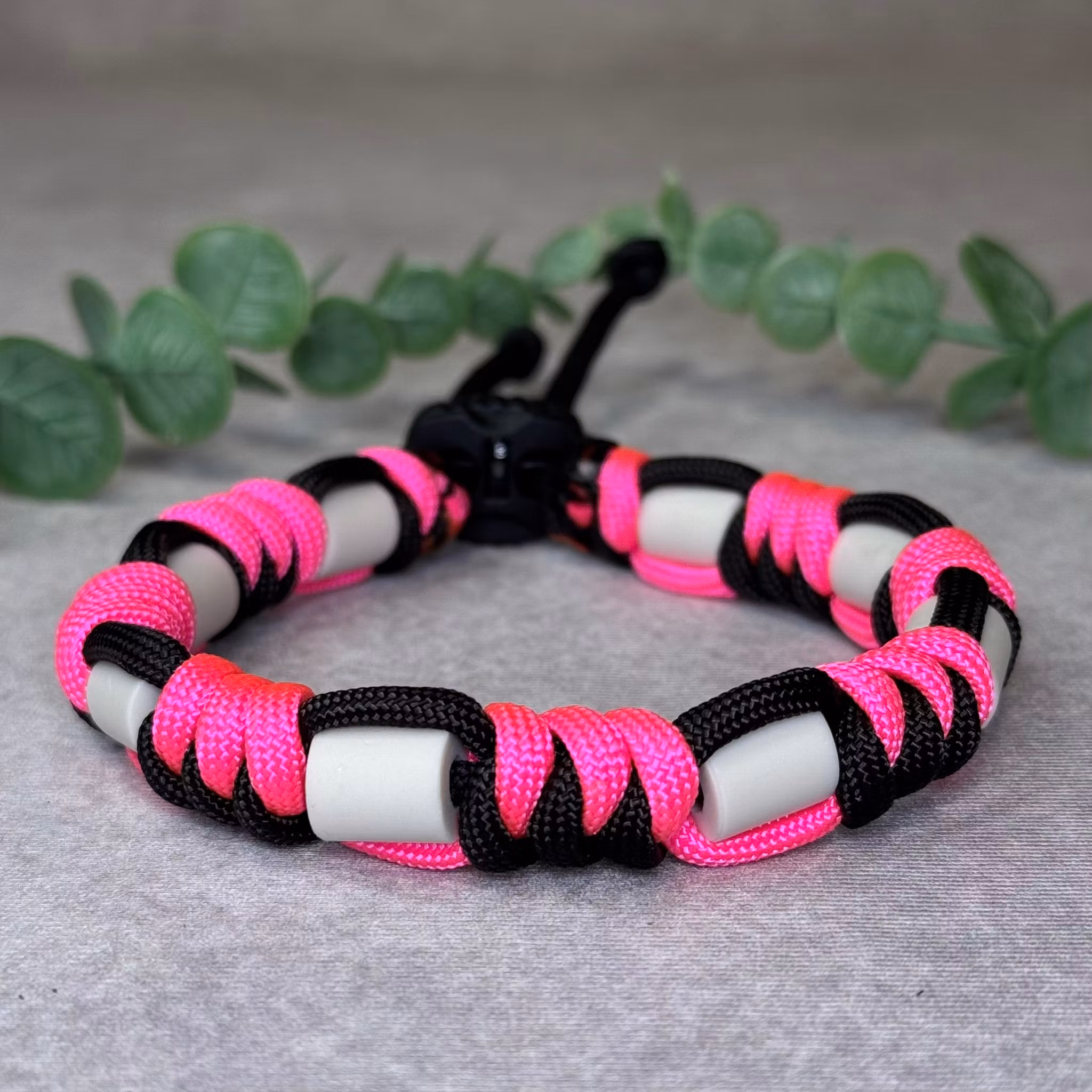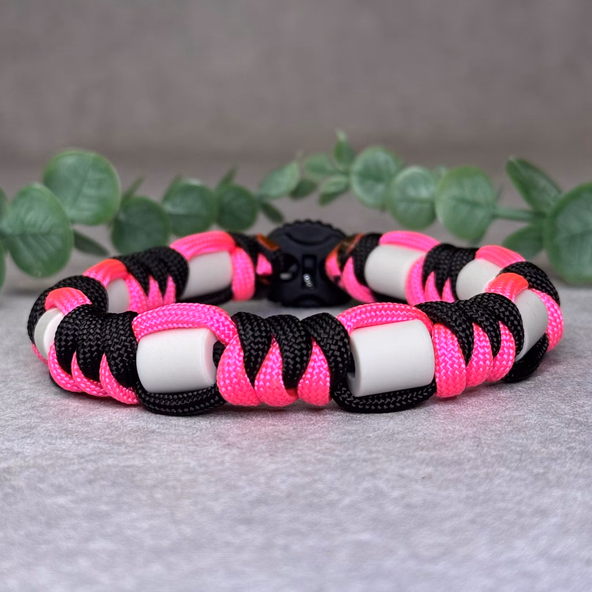 Neonrosa/Svart Carbon Fästinghalsband – Naturligt skydd med EM®-keramik