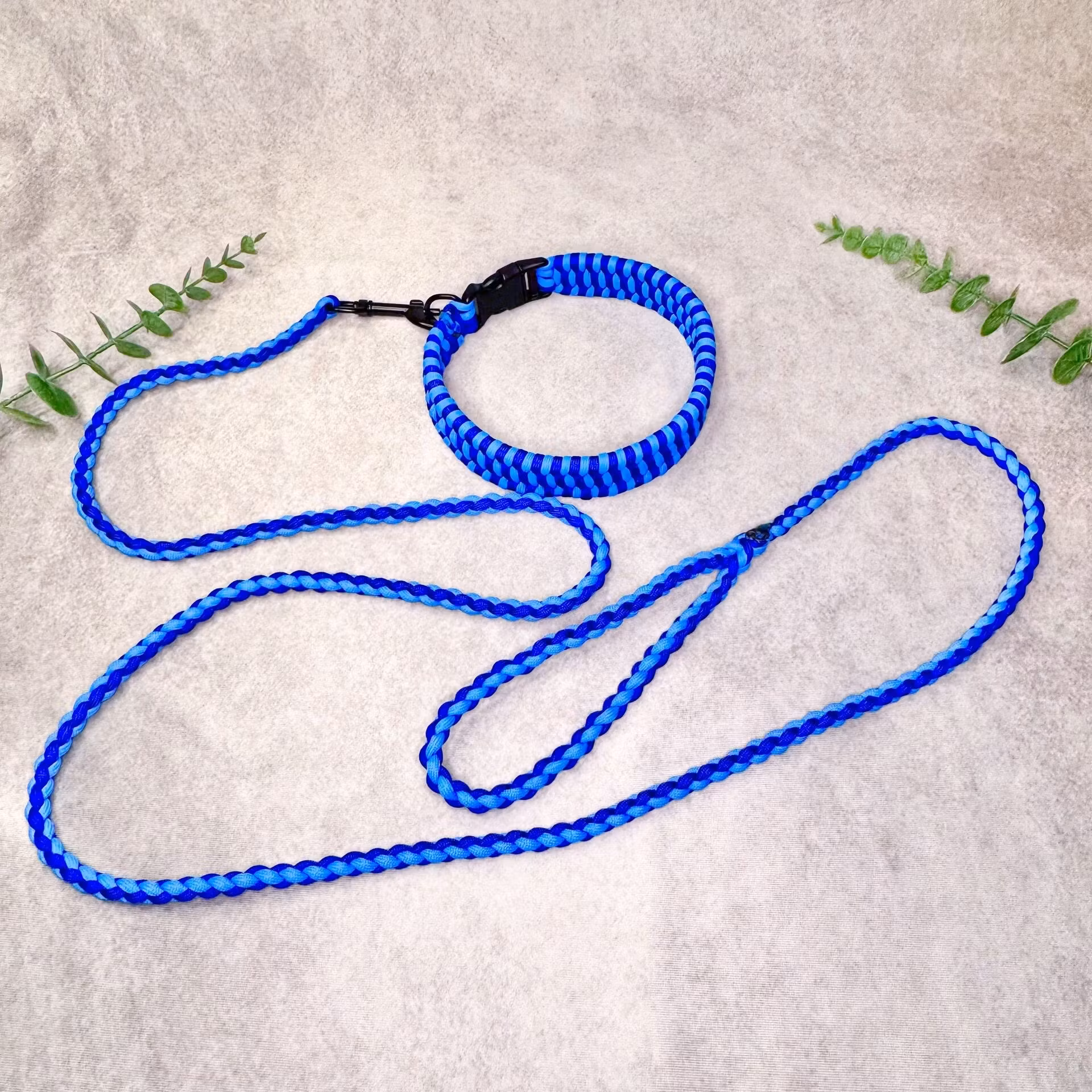 Ett elegant och tåligt hundkoppel i harmoniska blå nyanser.