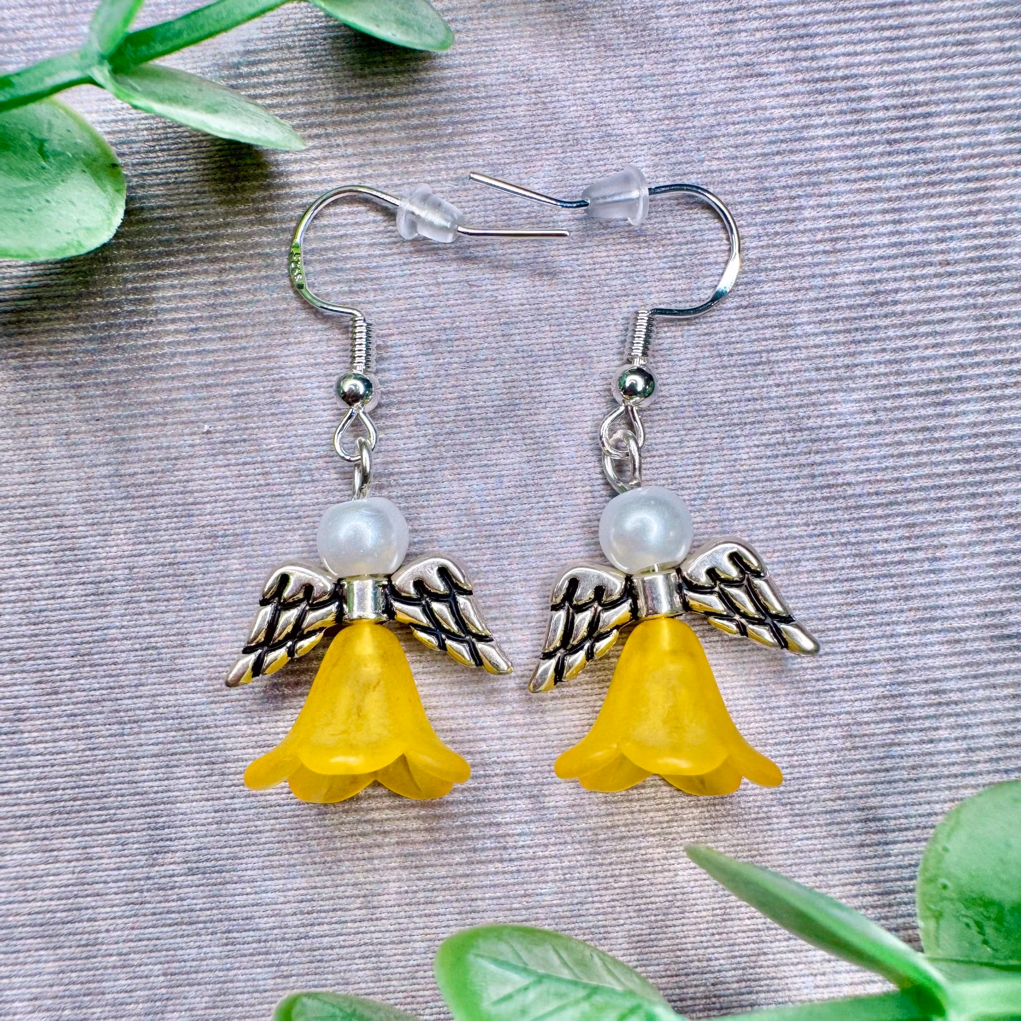 Glada, varma änglaörhängen i orange nyans.