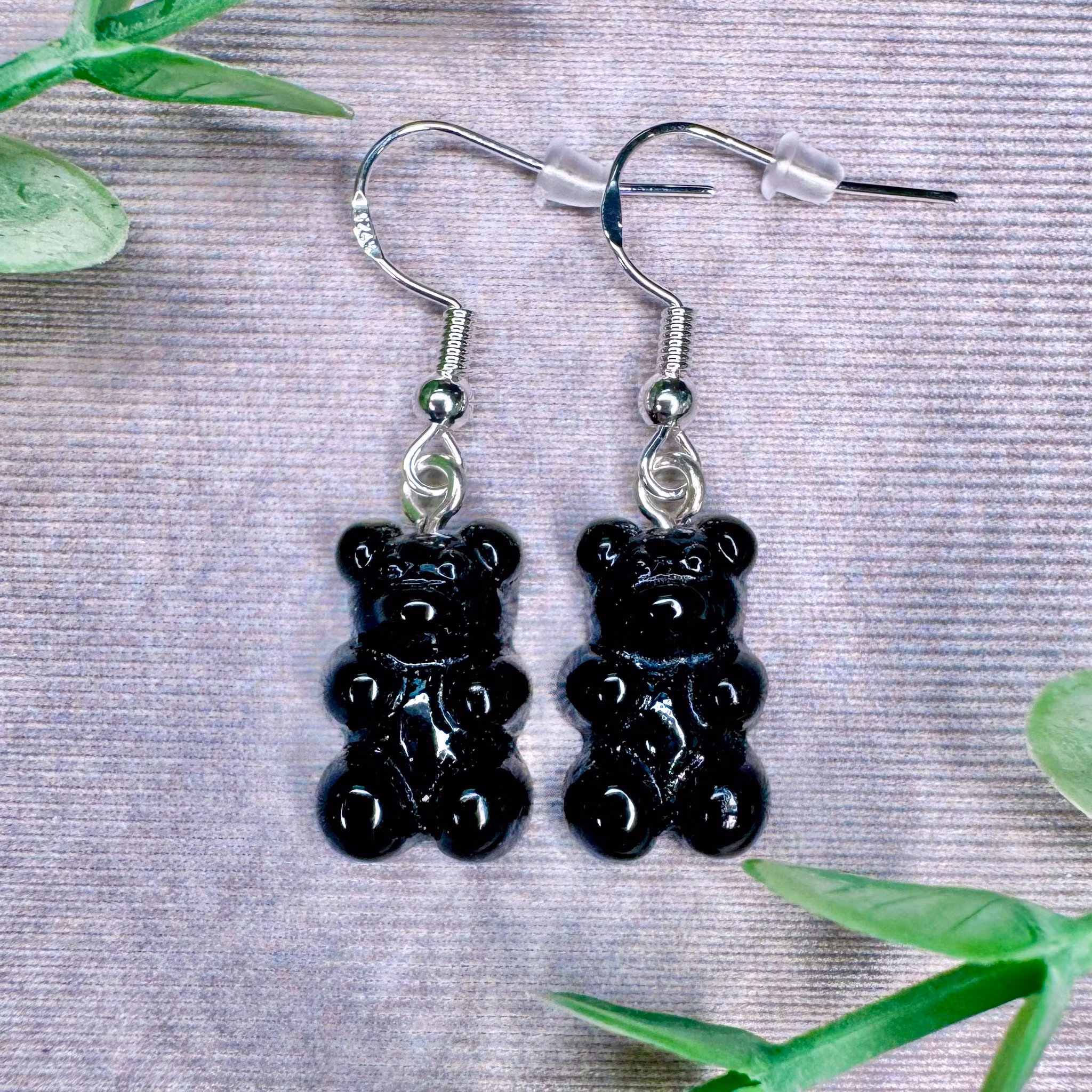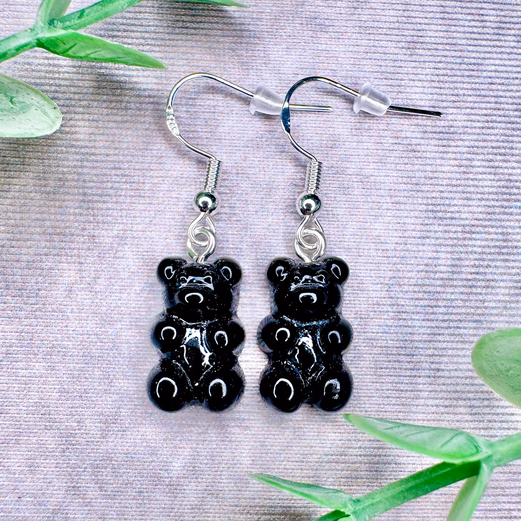 Örhängen med svarta gummibjörnar – en snygg och lite tuffare variant som passar dig som gillar kontraster.