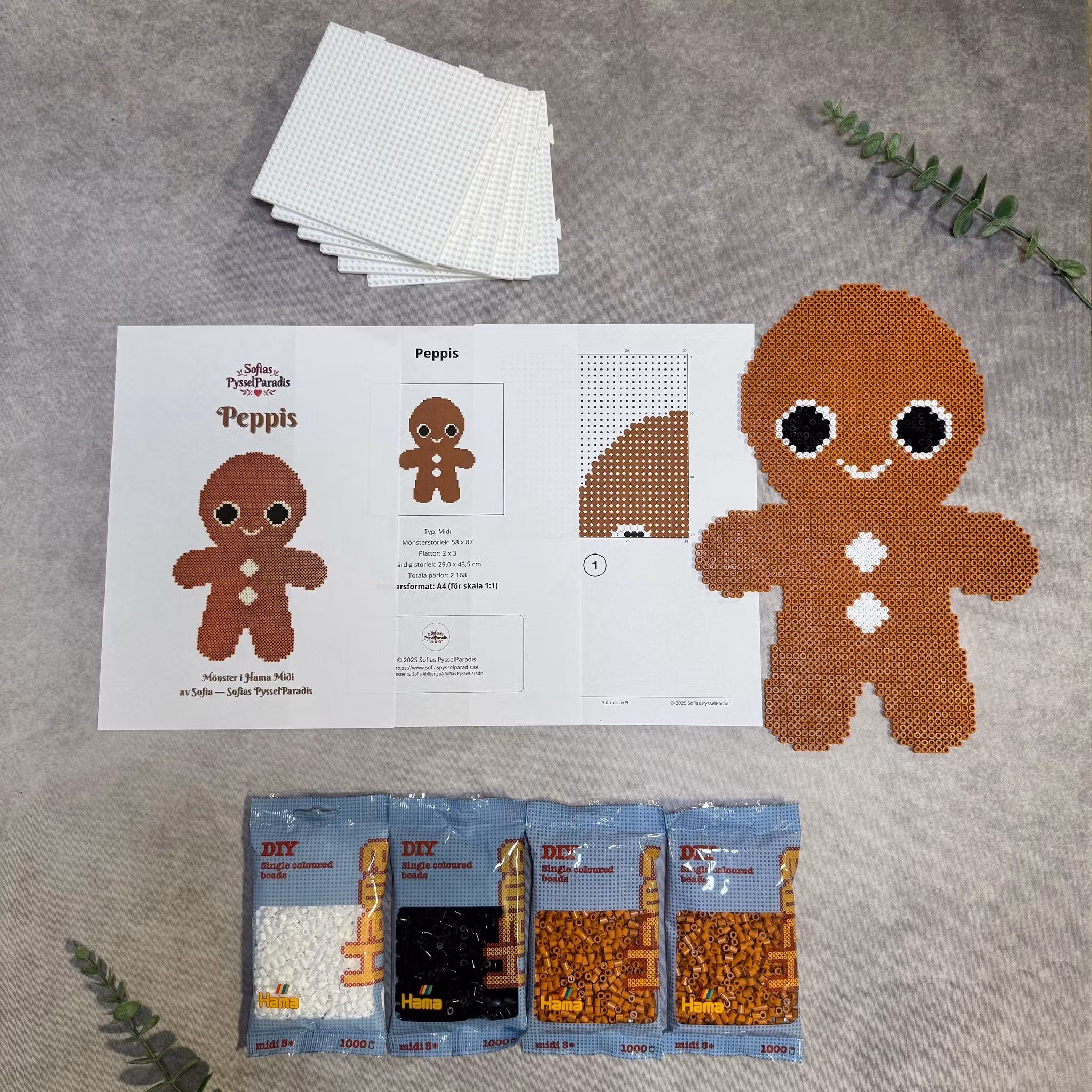 Alla paket innehåller hela pärlpåsar i de färger som behövs, och du väljer själv om du vill ha transparenta plattor, vita plattor – eller bara pärlor tillsammans med mönstret.