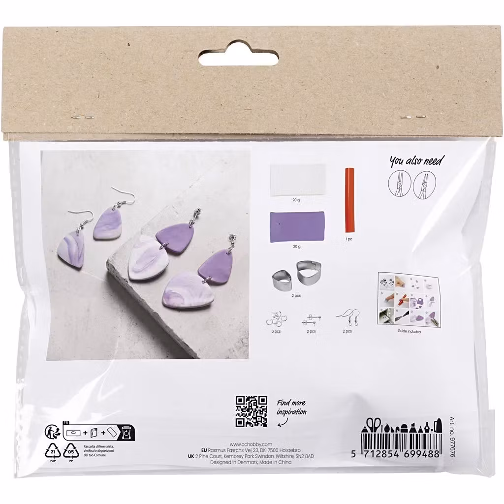 Med det här kitet kan du skapa två par örhängen av fin lerpolymer i vacker marmorerad design.